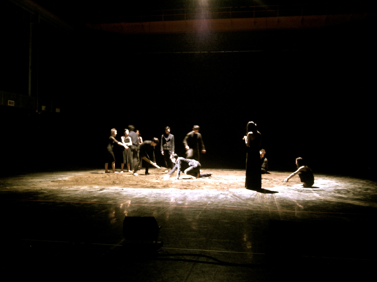 他們排練了兩三個片段。前半部緩慢沈著,像是沒有對話的舞台劇——據說這段其實會成為《椏幹》的收尾,但因為我沒看過前面應有的鋪陳,所以尚不能領受這番餘音的後勁。後半部生命力爆發:最初是無序行走進展到無序奔跑,在我看來簡直是布朗運動(物理名詞)升溫;接下來所有舞者齊力發威,驚人而統一的力道召喚出濃烈的非洲色彩。雖然是舞蹈作品,但音樂的意象最為鮮明,應該說:「音樂誘領舞蹈」是這段表演的奧義。這群舞者裡潛入了一位歌者兼演奏者,就是他以鼻笛與惑人的嗓音引誘那些生命覺醒。